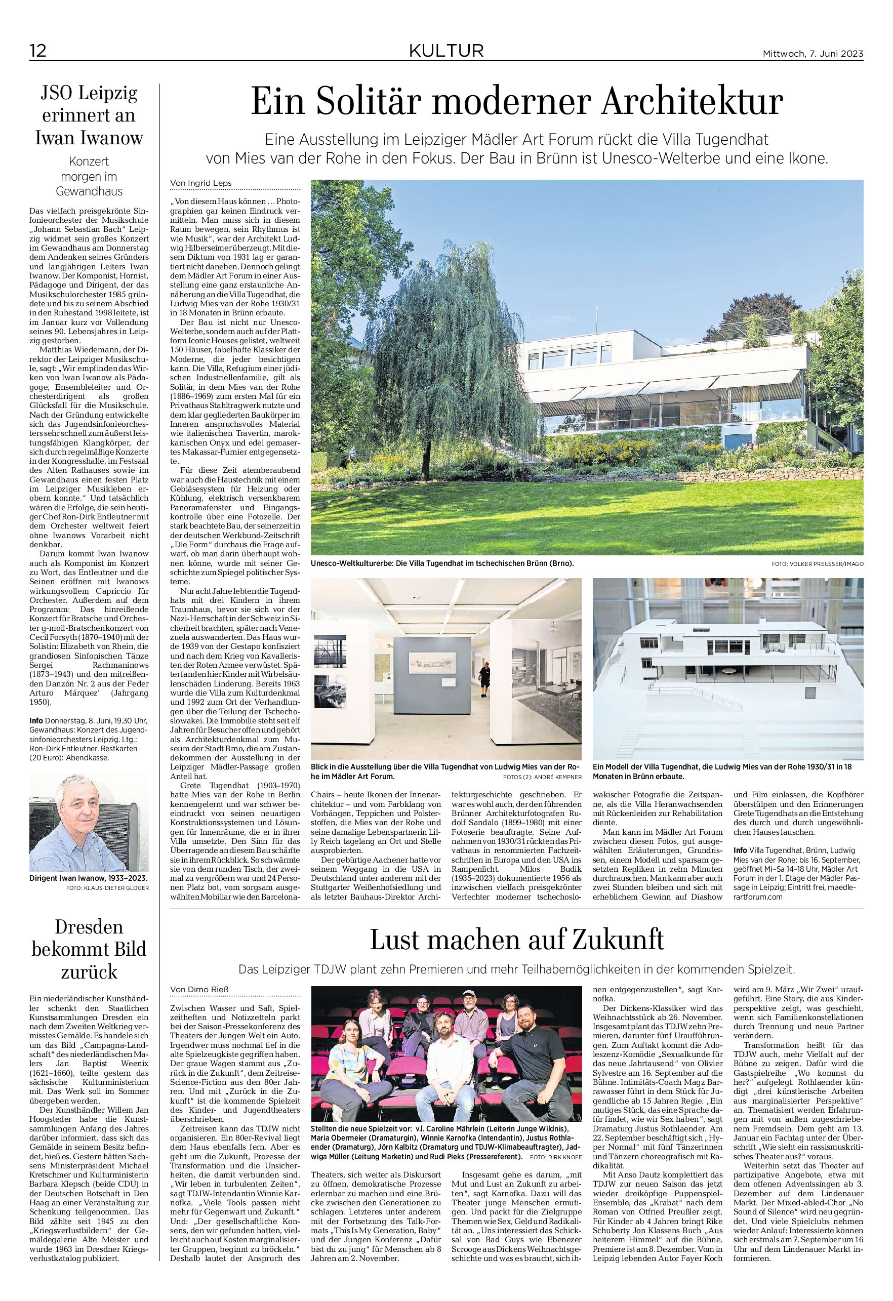 Leipziger Volkszeitung 07.06.23: Ein Solitär moderner Architektur